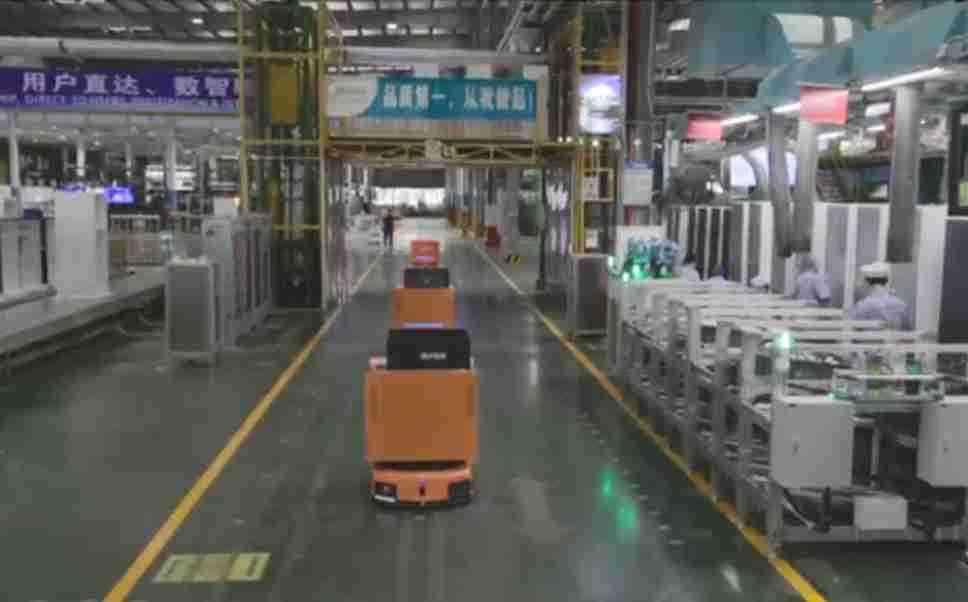 为车载冰箱物流配送打造的智能解决方案,,包含产中物流通过潜伏举升AMR搬运至线边,,,产后成品物流智能仓储,,流程包含产中物流智能齐套入库,,线边安灯叫料AMR智能配送至线边,,,成品入库、、、、出库,,,通过无人堆高车机器人,,智能仓储管理替代人工作业管理,,,实现更高存储、、更高效率、、更具柔性化的解决方案。。。
